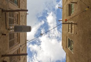 الشبابيك أزقة، الشبابيك مرايا، الشبابيك جسور يلتقي على اطرافها التأئقون لنسمة هاربة من وعيد الصيف، تلوح بما تيسر من عشق الأهالي لإضاءة حجراتها بفيض النور الذي ينحني بصعوبة فوق مبان لم تمل هامتها في وجه الريح، متراصة بلا ارتدادات، بلا فواصل إلا تلك السطوح التي تشرف على سماء ملبدة بالوعود.